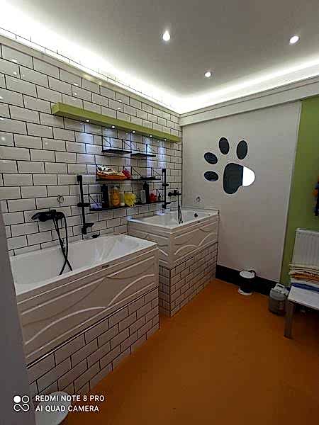 Öncelikle tasarımı yapılarak dünyadaki örnekleri inceledik. Hayvan dostlarımızın hoşlanabileceği renkleri, desenleri seçtik. Kuaför salonu yanı sıra, Türkiye’nin farklı yerlerinden gelecek öğrenciler için eğitim salonu yaptık. Yine Türkiye’de görülmemiş bir spa odasını bu projede yaptık.