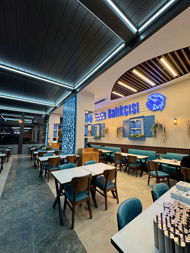 İstanbul’un lezzetiyle ünlü balıkçısı Tuzla Balıkçısı’nın Ümraniye Avrupa Konutları’nda ki şubesinin a’dan z’ye tadilatını yaptık. Tadilat öncesi çizilen proje ve 3d ortamında yapılan dekorasyon çalışmaları ile işe başladık. Restoran iki katlı olup, içerisinde çalışmaya başlarken hiçbir şey bulunmuyordu. Her şey sıfırdan ve tamamen bizim işçilik ve malzemelerimiz ile yapıldı.